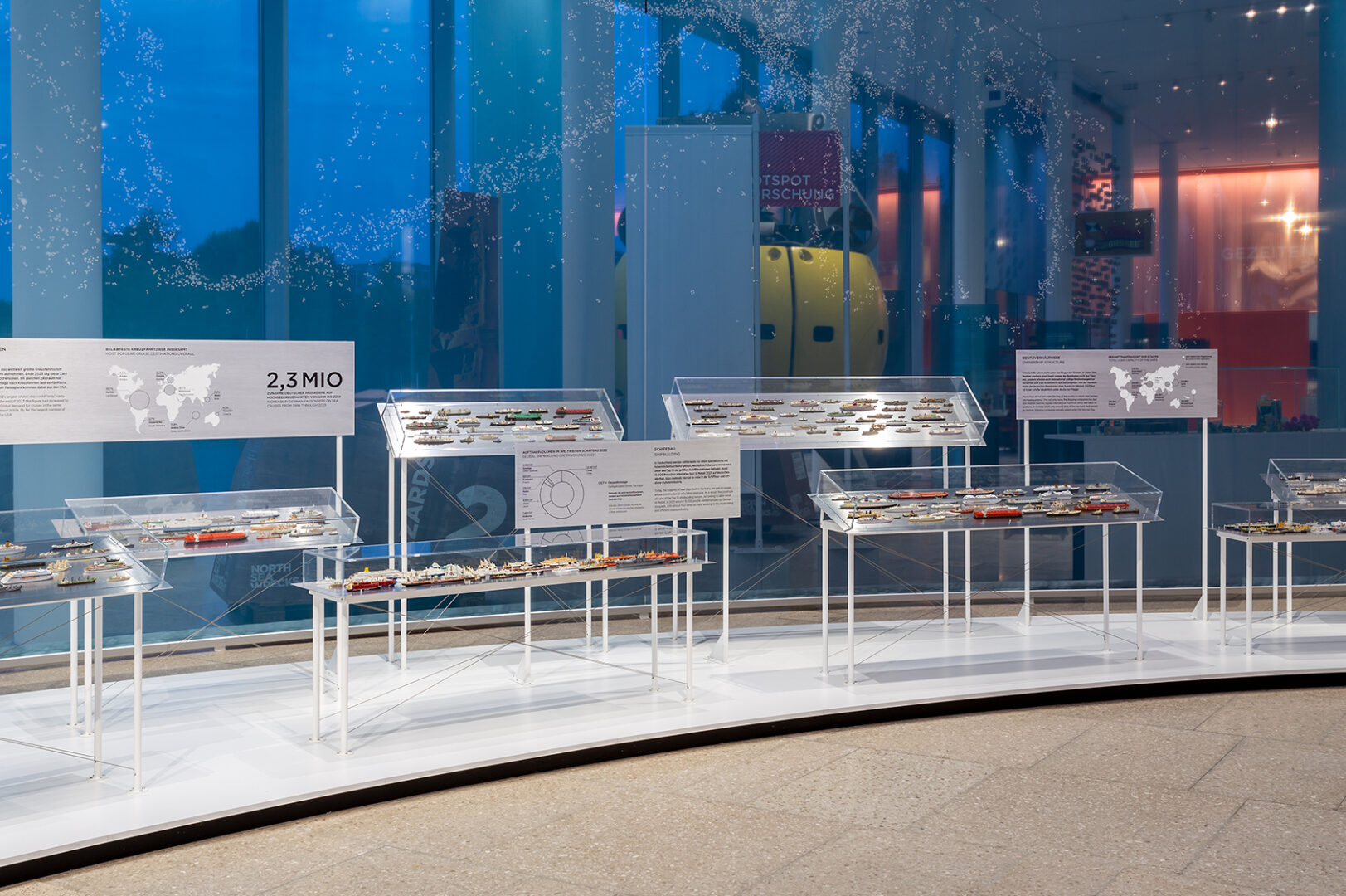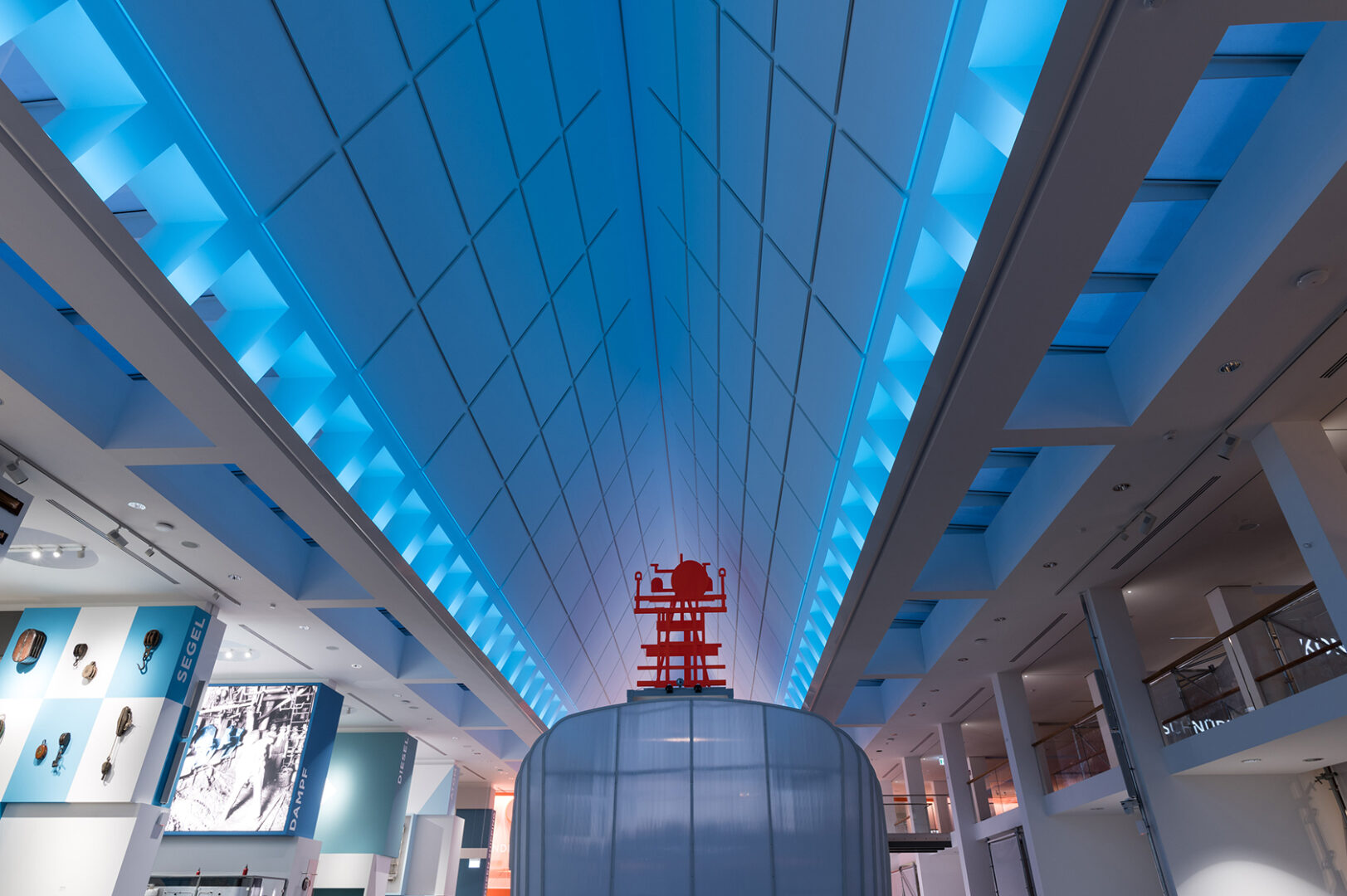 The central “light theme” of the architecture of the Bangert building and the exhibition of the Maritime Museum Bremerhaven is daylight and its dynamic change over the course of the day.